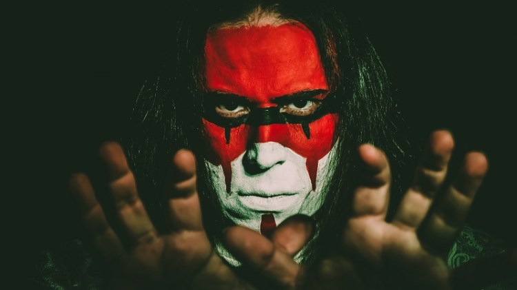 And why exactly is he Snow Owl and what’s the story behind his iconic blue facepaint? “Yes, well, I have Arhuaco blood. That’s a nation from indigenous people of the Sierra Nevada area of Colombia, and we have a name when we are born, which is a spirit animal, so that is my real name: Snow Owl. So the reason for the paint on the face is: each album, that we are doing right now, they are about different spiritual paths. Souls are living on this planet and there is a blue, a red, and a yellow path. So for the blue one that’s the blue mask and now that we are going to be releasing the Red Road, there is a different red mask that I will be wearing for that as well. So, it’s significant which path my soul is on right now.”